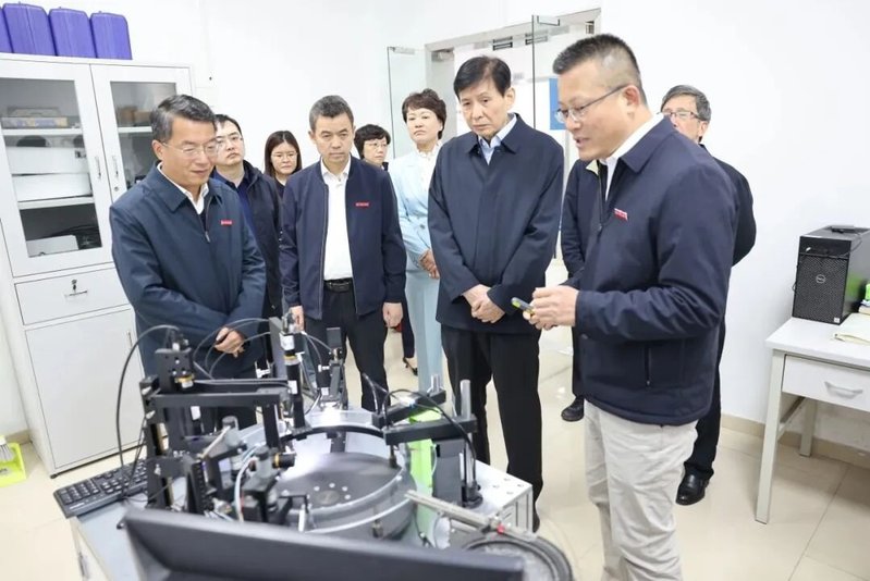 福建省科技厅副厅长叶碧海(左三)、泉州市科技局局长史思泉(左四)莅临参观指导