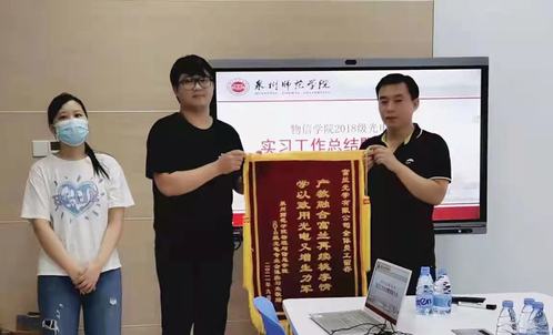 实习结束之际,我院在富兰公司举行2018级光电信息科学与工程专业实习实训总结大会。学生代表们在会上发言,他们回顾了实习历程,畅谈了实习感受并对自己所代表的部门做了一个总结性的汇报;富兰公司的相关领导介绍并总结了实习实训情况,对学生的实习态度和取得的成绩给予了充分肯定,对学生未来的职业生涯提出了希冀。会上实习队向富兰光学有限公司全体员工献上锦旗和感谢信,锦旗中“富兰光学有限公司全体员工惠存:产教融合富兰再续桃李情,学以致用光电又增生力军”的内容充分地表达了此次实习的满满收获及拳拳的感激之情,也表达了新一代大学生积极向上、勇于探索、对未来的职场生涯满怀憧憬的精神风貌。