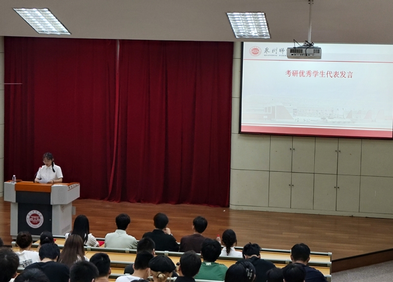 考研优秀学生代表和家长,对学校的培养、老师的帮助及同学的关怀表示感谢,全面分享个人的备考经验和家校协同育人的体会。