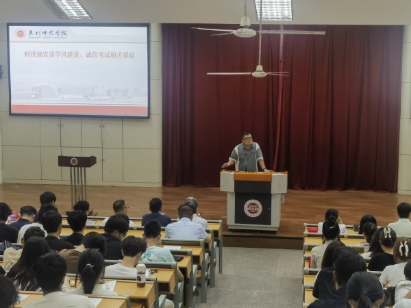 辅导员宣读学风建设、诚信考试相关倡议,学生代表做表态发言,学生现场签订《诚信考试承诺书》。