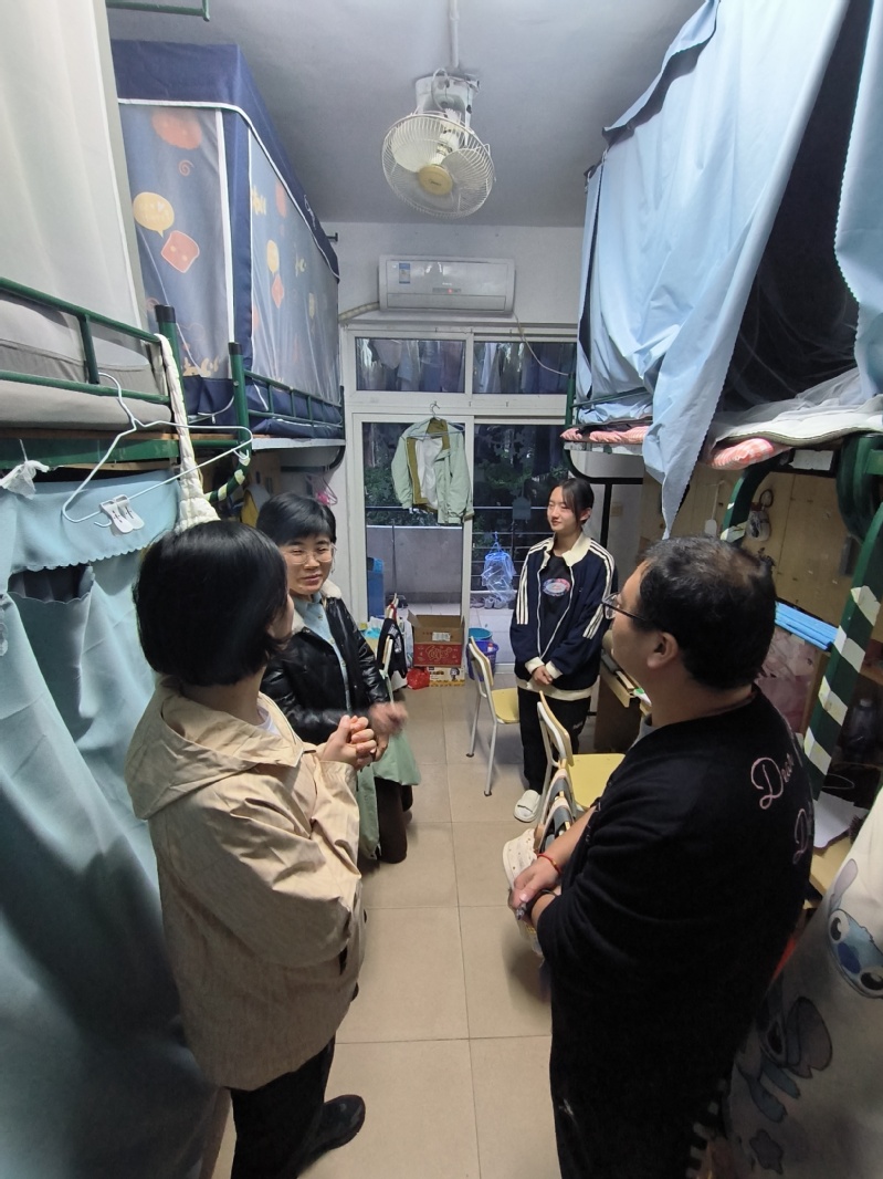 走访过程中,老师们一行与同学们进行了亲切交流,仔细询问同学们学习、职业规划及宿舍生活等问题,对学生提出的课程安排、实习和就业等方面的疑惑及时提供了解答,鼓励同学们树立学习目标,努力奋斗成长成才。林蕙琼强调了文明宿舍建设的意义,提醒同学们在学期间,大半时间在宿舍里,要从卫生、安全、文明、和谐等方面创建一个宜居环境,养成良好生活习惯,充分利用网络资源,拓宽知识,营造积极健康的宿舍文化,做文明大学生。余燕忠鼓励同学们要努力学习,积极参加各种活动,不断提高自己的综合素质,提醒同学们要注意安全,遵守校规校纪,共同营造一个和谐、文明、安全的学习生活环境。
