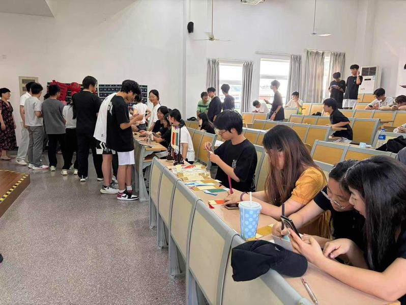 活动紧扣专业特色与文化传承,精心设置了四大互动体验区。“投壶雅戏”融合古代礼仪与闽南“搏饼”民俗,参与者投中即获光电主题手工取景器,展现古今智慧的交融;“书签互送祝福”区提供闽南语祝福模板,师生手写“平安喜乐”等寄语,传递浓浓乡土情谊;“中秋emoji猜猜乐”将“月娘光光”等俚语转化为趣味表情,猜中者获赠传统月饼,现场笑声不断;“哨响福至——闽南语口哨暗号挑战”别具特色,设置口哨暗号墙展示五个闽南语祝福词及其对应哨音节奏,参与者通过吹奏口哨传递“恭喜”“谢谢”等祝福,吹对即获闽南特色零食,以声音为媒介重现闽南地区传统通讯方式,引发热烈参与。