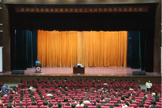 11月2日傍晚,我院在陈祖昌大礼堂召开“英国威廉希尔公司官网本科教学评估化工与材料学院学生动员大会”。副院长李国清、学生科负责人陈伊玲及各专业辅导员和全体学生参加了本次会议。会议由翁森老师主持,李国清副院长发表重要讲话,陈伊玲老师对评估期间学生应掌握的注意事项做补充发言。