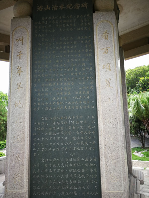 最后,实践队来到“治山治水纪念碑”亭,从碑文了解中华人民共和国成立后惠安县人民在党的领导下,征服穷山恶水,改造自然的光辉历史。