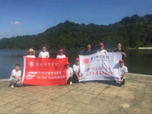 惠女水库陈工为实践队员们介绍了惠女水库基本情况并带领我们来到水库巡河,恰逢环保局工作人员取样化验,实践队员有幸与其共同乘坐冲锋艇至库中取水样。随后,陈工带领我们参观了惠女水库展览馆,了解惠女水库的建设历史,学习惠安女“艰苦奋斗、尊重科学、无私奉献、拼搏创业”的精神。