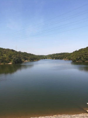 实践队前往锦芳水库巡河并取水样。锦芳水库作为饮用水源一级保护区,水质清澈,环境优美。
