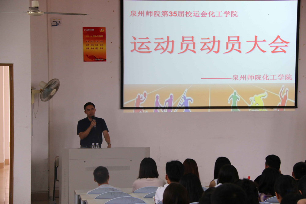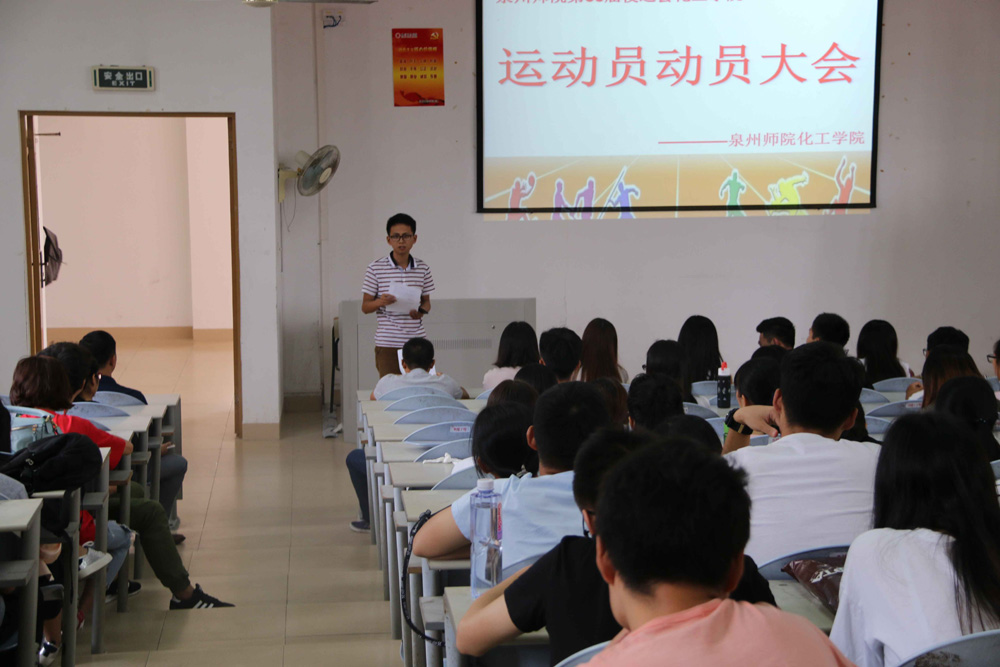 10月20日中午12:10,化工与材料学院在理工319举行了第35届秋季校运会动员大会。出席此次大会的有我院党委书记傅志雄老师,全体辅导员老师、三委会学生干部、各班学生主干和全体运动员。