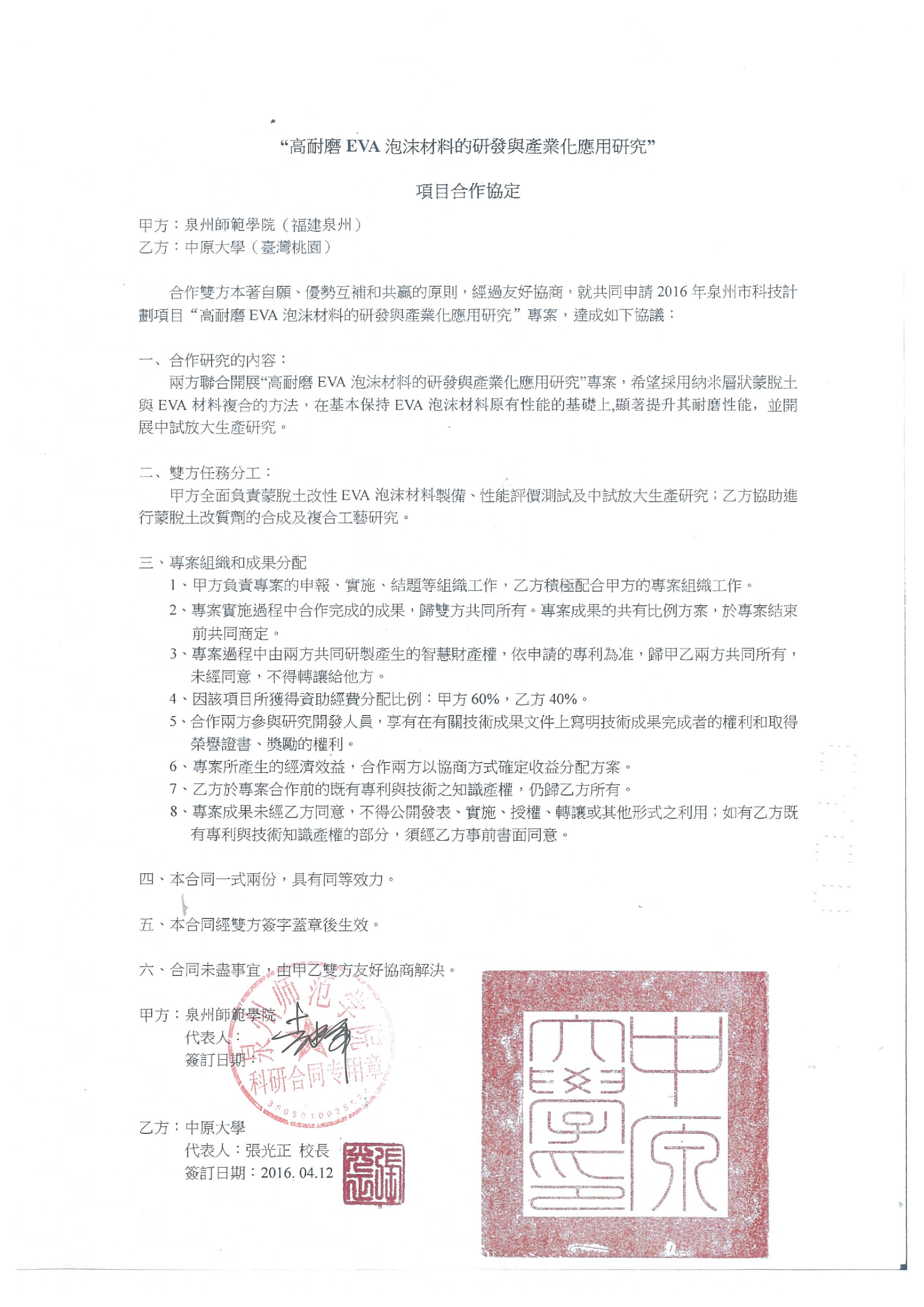 本专业自创办以来,与台湾各高校的合作越来越紧密:1. 于2016年11月派遣吕凤娇和王玲玲两位老师到台湾元智大学参加《福建省高校理工领域师资闽台联合培训班》,并如期获得相应研习证书;2. 2017年春季邀请台湾元智大学谢建德教授采用中英文相结合授课方式为15材料化学(闽台合作)专业学生讲授《材料科学导论》课程,弥补了本校老师仅有中文教学的不足,同时拓展了学生的专业知识面;3. 台湾高校多名专家莅临本学院参观基础化学实验室建设并对16材料化学(闽台合作)专业学生的实验操作进行现场指导点评。同时与台湾各高校互相学习,弥补不足,为学生更好地适应后面的专业实验学习和毕业论文设计,打下坚实基础;4. 在科技項目合作上,卓东贤教授与台湾中原大學联合申请研发项目(高耐磨EVA泡沫材料的研發與產業化應用研究)并获得资助。