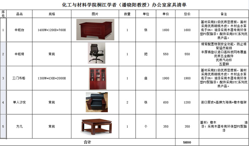 二、项目名称:化工与材料学院桐江学者办公室328家具采购项目