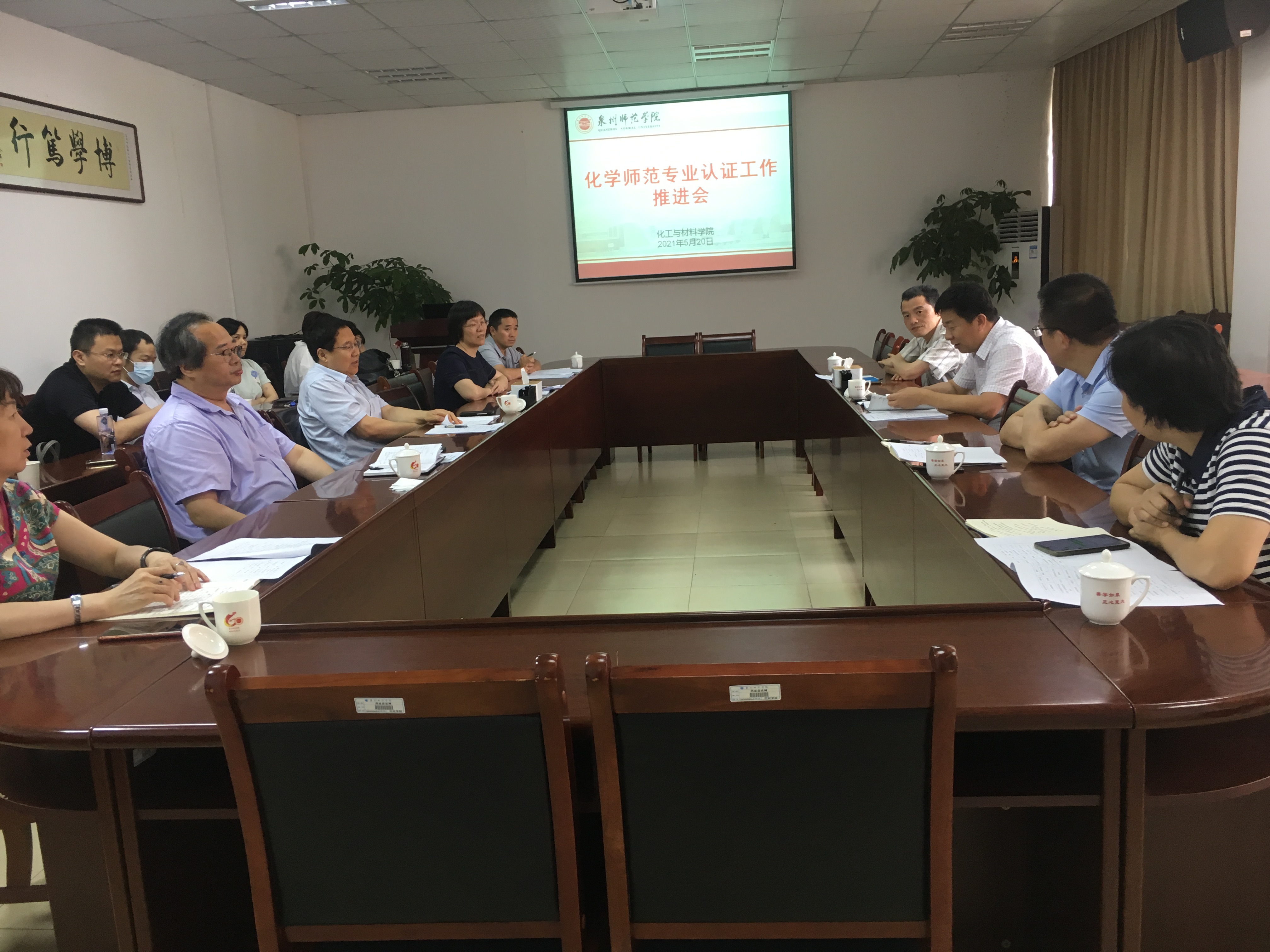 会上,袁俊生院长就化学师范专业认证整体工作情况进行了汇报,重点汇报了自评报告撰写、实践基地建设、实验室改造等方面目前存在的困难和问题。