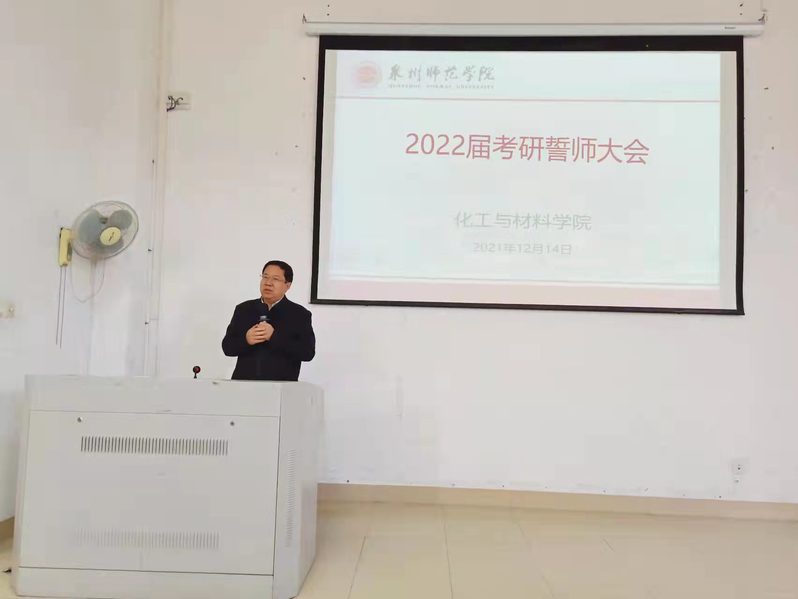 12月14日,化工与材料学院在理工楼319教室举行2022届考研誓师大会。全国优秀教师、博士生导师、院长袁俊生教授,福建省青年科技奖获得者、硕士生导师、副院长卓东贤教授,学工办全体老师出席誓师大会,为即将奔赴考场的2018级考研同学鼓劲加油、送上祝福。院党委副书记郑少君主持会议。