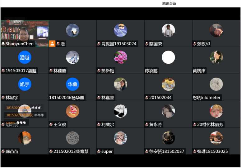 材料化学系老师在周末与同学们进行《全民K歌》活动。互动伊始,大家都比较腼腆。但随着几位同学的率先热场,大家的情绪被调动起来。系里的老师也参与其中,一展歌喉,进一步推高了线上气氛。同学们表示,遗憾的是时间过得比较快,不少同学来不及展示,两个小时的线上互动就结束了。