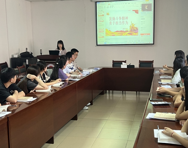 林琦芳围绕斗争精神是什么、为什么要有斗争精神、如何发扬斗争精神、发扬斗争精神勇于担当作为四个方面进行阐述。她指出,党员学生要强化理论武装,要把学懂弄通做实习近平新时代中国特色社会主义思想,同提高斗争意识、增强斗争本领紧密结合起来,为战胜一切风险挑战提供强大思想武器;要厘清斗争内涵,以“时不我待”的责任感、“只争朝夕”的紧迫感,发奋学习,刻苦钻研,把个人理想追求融入国家和民族的事业,把个人命运与国家和人民的命运联系在一起。要把握实践机会,摒弃和抵制“佛系”“躺平”“啃老”等不良思想倾向,积极投身社会实践,通过“三下乡”暑期社会实践、志愿服务、教学实习、参军入伍等多种途径,磨炼斗争意志,增强斗争本领,在实践中领悟习近平总书记所说的“刀要在石上磨,人要在事上练”的深刻内涵。