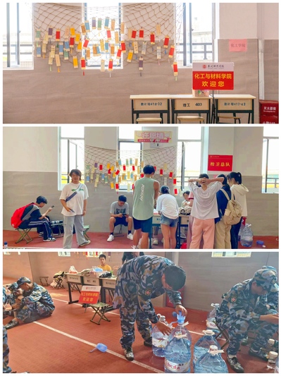 我院大本营设置休息区域、饮水区域为新生提供急救药物和饮水服务。学生会做好后勤保障,桶装水供应不断档,尽心贴心,为军训的新生提供温暖关怀。挂标语、写心愿卡,为新生加油鼓劲。