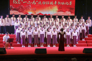 12月7日下午,由共青团英国威廉希尔公司官网委员会主办的“红歌献给党”纪念“一二·九”运动88周年歌咏比赛在陈祖昌大礼堂举行。化工与材料学院58名同学组成合唱团代表学院参赛。我院合唱团凭借对歌曲《我爱你中国》的出色演绎,荣获特等奖(总分并列第二)。22级化学(师范)专业王爱琪荣获优秀指挥奖。