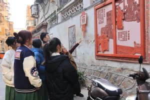 第三站三朝巷。实践队成员来到三朝巷,以红砖白石为基底的文化墙映入眼帘。墙面“忠孝廉节”四字采用砖雕工艺制作而成,是南宋理学家朱熹在岳麓书院与张栻论学时所书。此外,三朝巷两侧墙壁用砖雕、石雕、非遗剪纸(不锈钢)等传统工艺,以漫画、照片等图文并茂的形式再现留从效治理泉州时“刺桐环城”“招来番商”“兴利除弊”、留正“文韬武略”“两袖清风”等清官廉吏的故事和苏廷玉“读书要学为人,作文乃其余事。以明理为人,则是好人,以明理为文,则是好文”“相让是美德,相争是恶德”等家规家训,实践队成员驻足认真学习和体悟其中的廉洁内涵和价值。随后,沿途来到了清风亭,亭柱上篆刻的对联“心怀斧藻一肩月,地近甘棠两袖风”表达清廉正直之意,亭台楼阁与山水绿植,形成美观的照墙、山墙、亭榭样式,共同塑造了廉洁文化主题微公园。再继续往前走是“三正园”,三正表示“存正心、守正道、养正气”,用宣传栏的形式对三正具体内涵进行解释说明。实践队成员身临其境地感受三朝巷背后的廉洁故事,沐浴着廉韵清风。