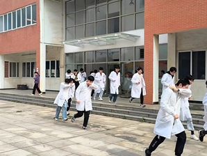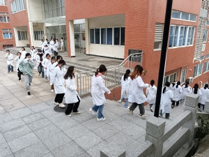 本次疏散活动分为15:00与16:00两场。在演习开始前同学们先在陈昭情实验楼各楼层集合排队,我院辅导员在各楼层负责秩序的维护,防止意外事故的发生。待哨声响起后同学们按照火灾逃生规范,用衣物或手捂住口鼻、弓着腰,依照既定逃生路线迅速前往宝龙实验楼前广场安全区疏散。