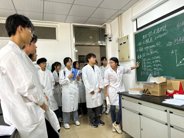 黄绵丽博士从紫外可见光谱测定的原理出发,详细说明了实验步骤、实验仪器、实验注意事项及实验应用场景,并进行现场演示实验操作,让同学们对整个实验流程有清晰的了解。接着,学生进行分组实验(授课专业:23高分子,总共54人,分5轮次;本轮次12位同学,分6组,每组2人)。整个公开课内容丰富、思路清晰,学生的实验实践能力得到锻炼,对紫外可见光谱原理及其仪器操作有了更深入的认识。