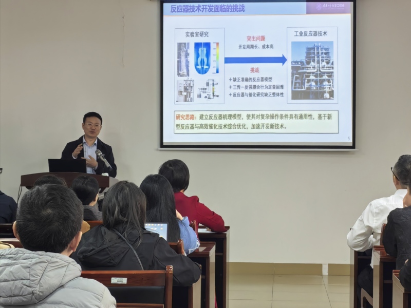 王铁峰教授指出,对于化工新技术开发,催化和反应器是两个核心问题,但二者往往被分别研究。通过反应器和催化剂研究相结合,可以促进二者之间的相互适应和协同优化。学术讲座以选择性加氢、氢甲酰化等反应过程为例,介绍新型浆态床反应器和催化剂方面的基础研究、技术开发和工程应用,其中反应器研究突出反应器理论建模和计算流体力学模拟,催化剂研究强调可控制备和基于对构效关系的深入理解指导催化剂设计。本次讲座为我院师生带来了新的研究方法和学术观点,并激发思考,与自身知识和想法融合碰撞出新的火花。