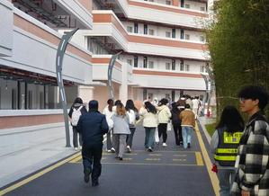 在准备阶段,我院根据每个宿舍区的居住特点和地理位置,通过实地考察合理设计学生的逃生路线,并制作成电子逃生路线图,通知到每一位参加逃生演练的同学。在活动过程中,我院辅导员及相关部门负责人在各楼层积极维持秩序。待哨声响起,同学们立即按照火灾逃生路线规范行动起来。大家纷纷用衣物或手捂住口鼻,身姿下沉,沿着事先规划好的逃生路线,迅速向规定安全区撤离。