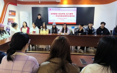会上,毕业生汇报了各自的就业方向和进度,谢小婷就同学们求职中遇到就业难题、就业迷茫等问题进行一一解答,并分享大量生动真实的就业案例,进一步引导学生树立“先就业、后择业”观念,重点教育引导学生树立实干的劳动观、平等的职业观和主动的就业观。结合当前就业形势与制药专业学生的就业情况,她强调同学们要增强就业的主动性和自觉性,密切关注招聘动态,勇于投递简历,把握好就业机遇。同时,积极调整就业心态,以平和、自信的心态应对求职中的挑战与困难。