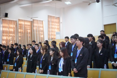 (院第二届学生会主席团成员倪思莹致开幕词)