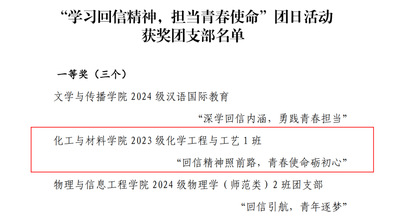 我院2023级化学工程与工艺1班在校团委“学习回信精神,担当青春使命”团日活动评比中获得一等奖