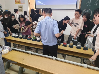 在第三十八个国际禁毒日即将到来之际,为切实提升师生禁毒防毒意识,6月12日下午,化工与材料学院联合丰泽公安分局禁毒大队共同开展“禁毒护航,共筑防线”主题宣传教育活动。活动通过专题讲座、实物展示、视频教学等多种形式,为师生们带来了一堂生动深刻的禁毒教育课。