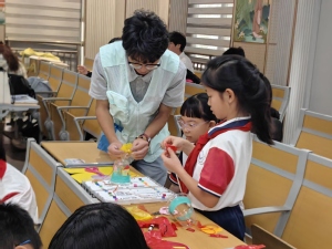 在制作彩色风铃环节,队员们先拆解“裁剪、染色、串挂”三大核心技法,再以“塑料瓶除了扔掉,还能变成什么”的提问引导发散思考,让孩子们直观理解“废弃物是放错地方的资源”。“‘塑’造繁花”环节更具巧思,在队员们的悉心指导下,孩子们将彩色塑料袋,通过剪、拧、扎等简单手法创意搭配,亲手打造出一朵朵形态各异、永不凋零的“塑料繁花”。在指尖创作的过程中,孩子们既锻炼了动手能力、创新思维与问题解决能力,更在动手实践中深化环保与节约意识,将“变废为宝”的理念自然内化为日常习惯;同时在发现美、创造美的过程里,真切感受到艺术与生活交融的独特魅力。