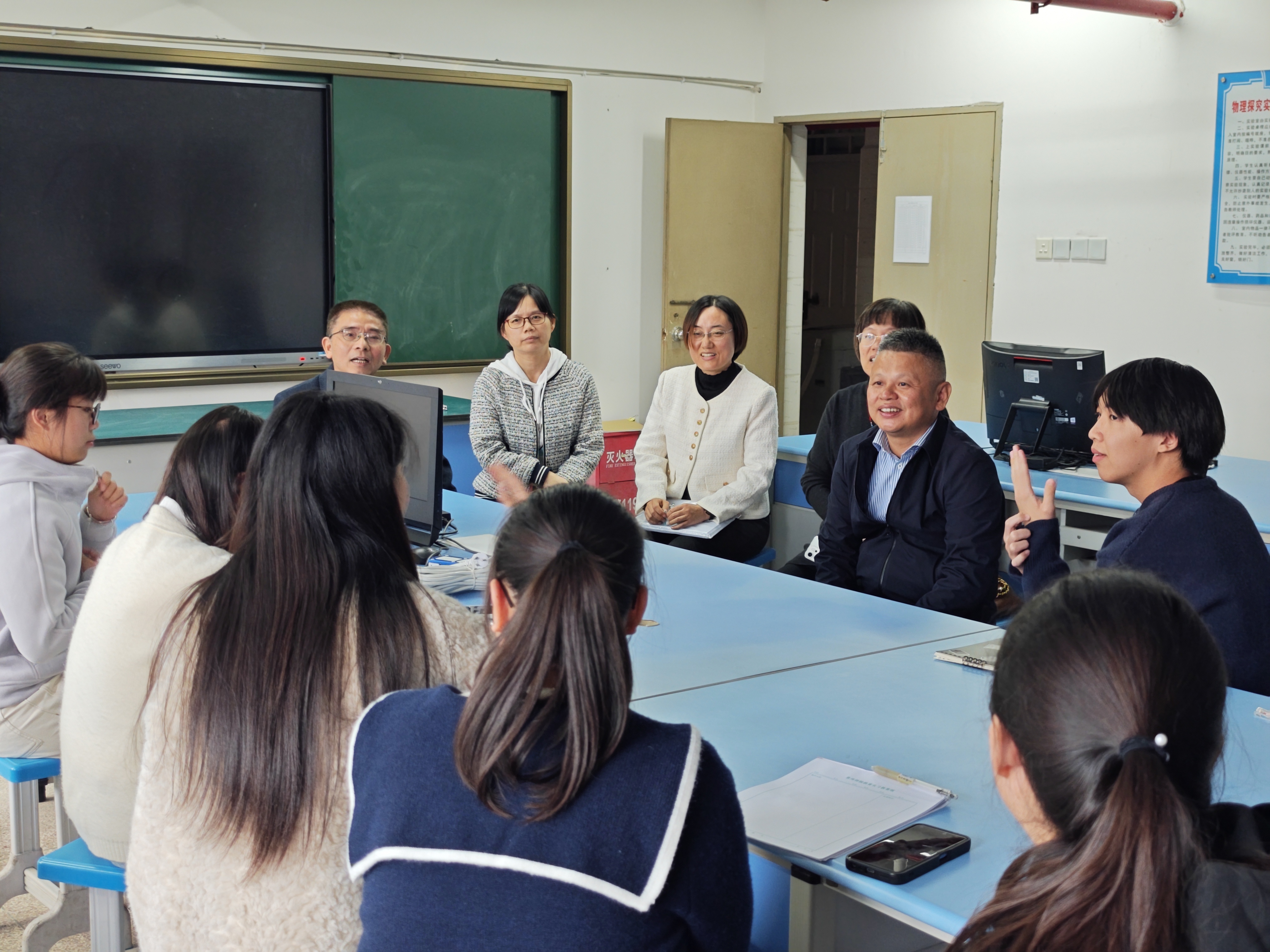 在实习学校,学院领导一行与实习学校领导、指导教师进行了深入交流,详细了解实习学校的培养安排、管理措施以及我院实习生的总体表现,对实习学校为我院学生提供的优质实践平台和悉心指导表示衷心感谢。随后,学院领导与实习生们进行了面对面座谈,仔细询问同学们在课堂教学、班级管理、生活适应等各个环节的具体情况,认真倾听他们在实习过程中遇到的困惑与实际困难。
