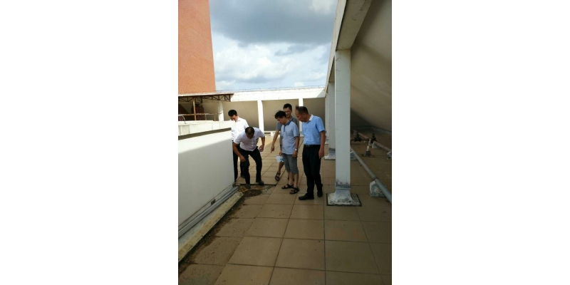 7月28日下午,陈亚兵副校长带领后勤管理处、明德物业公司有关负责人实地检查学校防抗第9号台风“纳沙”准备工作。