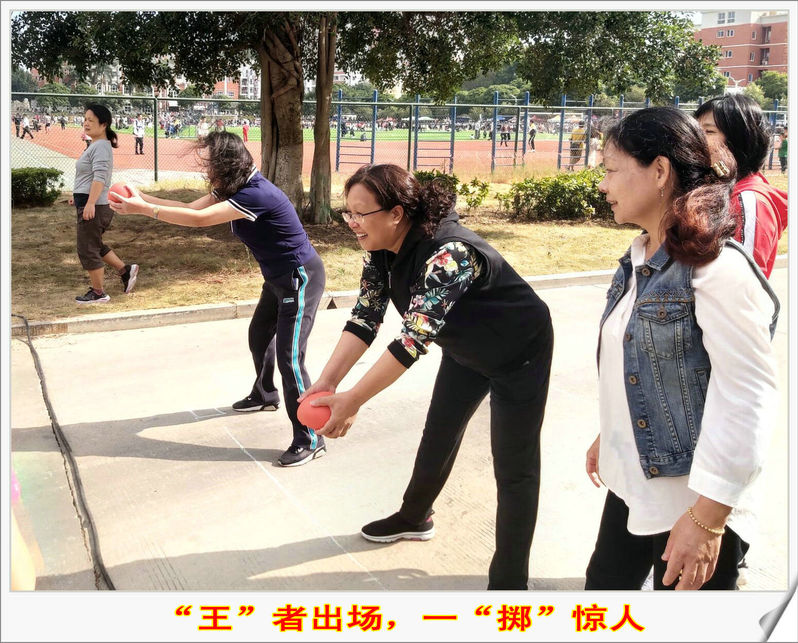 2019年11月6日上午,校运会教工女子组实心球比赛在陈伟利体育馆举行。海洋与食品学院王芳教授凭借完美的发挥获得教工女子组实心球季军。