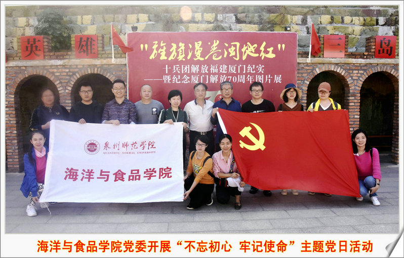 为进一步提升师生党员的政治理论水平、干事业的激情和能力,深入推进海洋与食品学院“不忘初心、牢记使命”主题教育,11月2日,海洋与食品学院党委书记蔡英卿教授带领师生党员、入党积极分子到厦门和南安开展“不忘初心、牢记使命”主题党日活动。