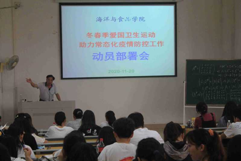 11月20日,海洋与食品学院在理工楼320召开冬春季爱国卫生运动助力常态化疫情防控工作动员部署会。海洋与食品学院党委书记蔡英卿教授主持会议,学院全体辅导员和学生骨干参加会议。