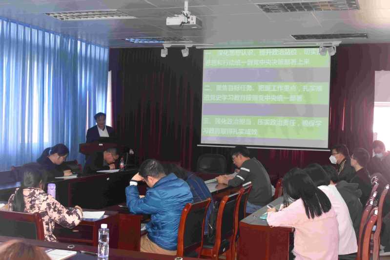 蔡英卿向全院教职工传达上级的指示要求。第一,要深化思想认识、提高政治站位,深刻认识开展党史学习教育的重大意义,准确把握开展党史学习教育的工作重点,深入领会党史学习教育的组织保障要求,切实把思想和行动统一到党中央决策部署上来。第二,要聚焦目标任务、把握工作重点,扎实推进党史学习教育按照党中央统一部署,要在学史明理上下功夫,深刻领悟党的理论成果和思想伟力;要在学史增信上下功夫,增强听党话跟党走的坚定信仰;要在学史崇德上下功夫,坚守立德树人的初心使命;要在学史力行上下功夫,开创学校发展新局。第三,要强化政治担当,压实政治责任,坚持正确导向,营造浓厚氛围,强化统筹协调,加强督促指导,确保学习教育取得扎实成效。