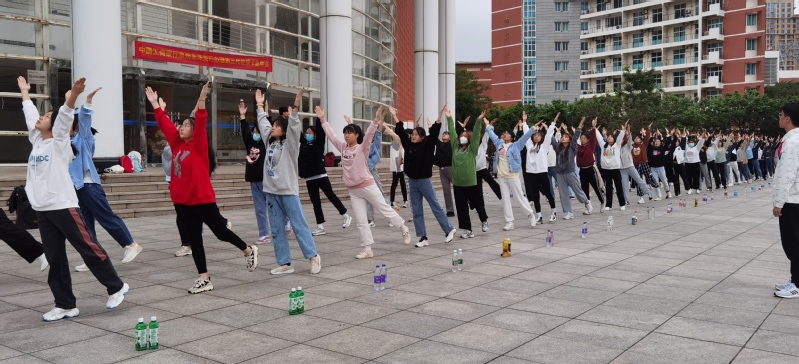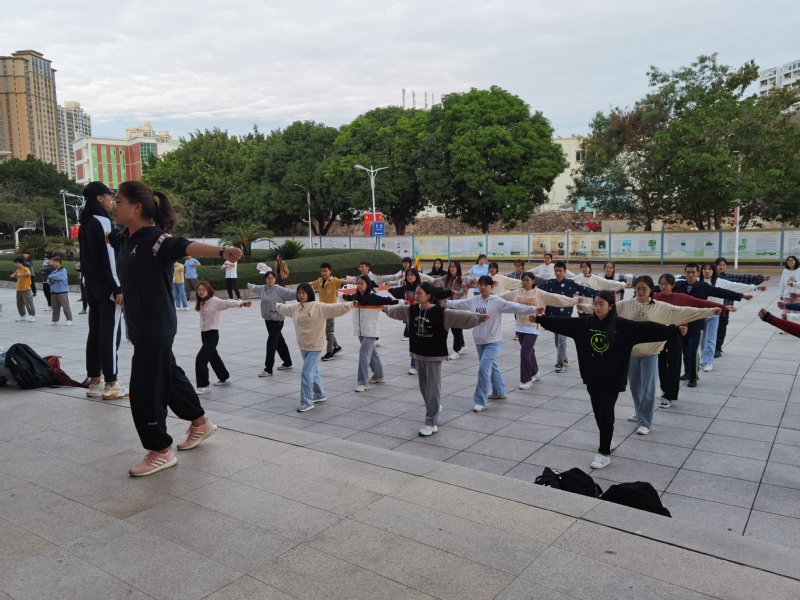 天明与朝阳俱起,夜半共晚霞同归。为迎接第39届校园运动会广播操比赛,海洋与食品学院100余名新生在学长学姐的带领下,自军训结束后便投入紧张刻苦的训练当中。