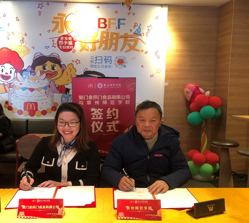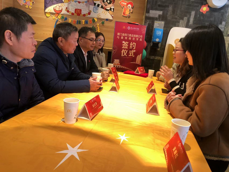 袁建军院长从学院建设、学科建设、师资队伍、人才培养、科研等方面介绍了海洋与食品学院的发展概况。同时,感谢厦门金拱门食品有限公司对于校企合作给予的大力支持;蔡志荣书记表示此次校企合作专业实践基地的建立,为泉师学子提供更多、更好、更高的学习实践和就业、择业的广阔平台,也为校企双方就产学合作、协同育人、产品开发等方面展开全面深度战略合作提供了契机。愿每一个从实习实践基地走出来的同学都能更加自信、更加从容、更加快乐地走向社会、报效祖国。