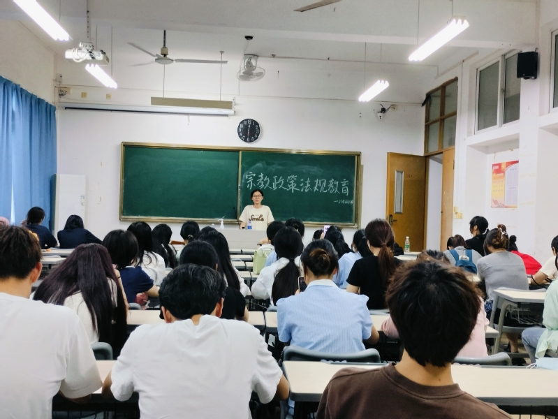 为加强我院学生对宗教政策法规的理解,提高学生的政治鉴别力,维护校园和谐稳定,我院各班级于5月12日-5月17日召开了宗教政策法规教育主题班会。班会上,同学们认真学习宗教事务条例、宗教政策要点汇编、互联网宗教信息服务管理办法等材料,同时通过讲解邪教、非法宗教活动的特点和危害,提升了我院学生自觉抵御和防范校园宗教渗透的能力,加强学生的社会责任感和使命感。
