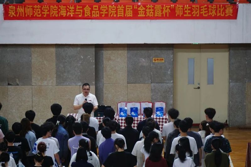 4月12日上午,我院首届“金菇露”杯羽毛球比赛在明德体育馆盛大开幕,泉州金菇露生物科技有限公司总工程师吴耿煜,学院党委书记蔡志荣,党委副书记、副院长梁鹏,党委副书记刘礼元,团委副书记、学工办副主任王哲芳以及全体辅导员出席开幕式。我院师生运动员共100余人参加比赛,比赛共分为男双、女双和混双三个项目。