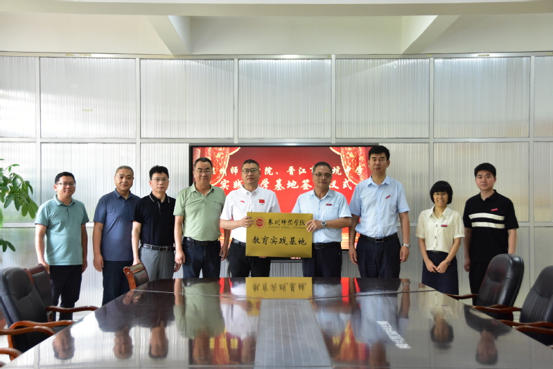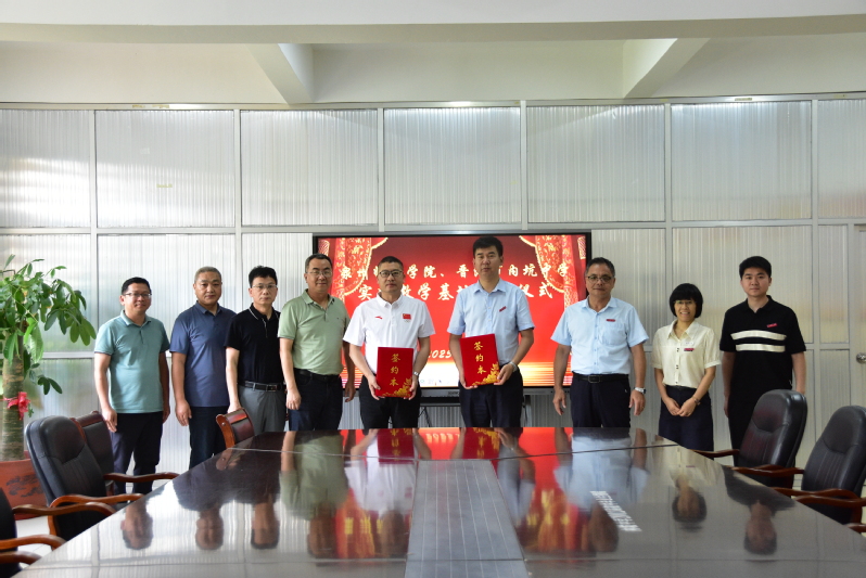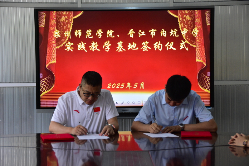 学院副院长梁鹏与内坑中学党总支书记陈鸿群共同签署了共建教育实践基地协议书,党委书记蔡志荣向陈鸿群书记授教育实践基地牌匾。