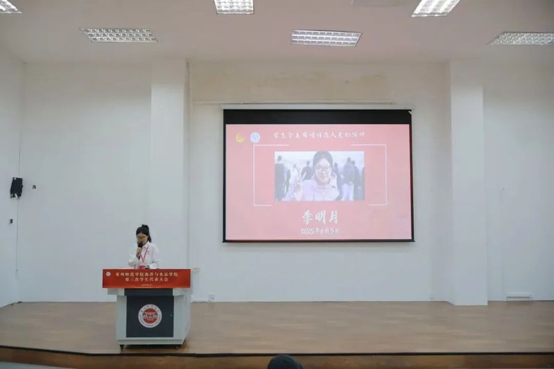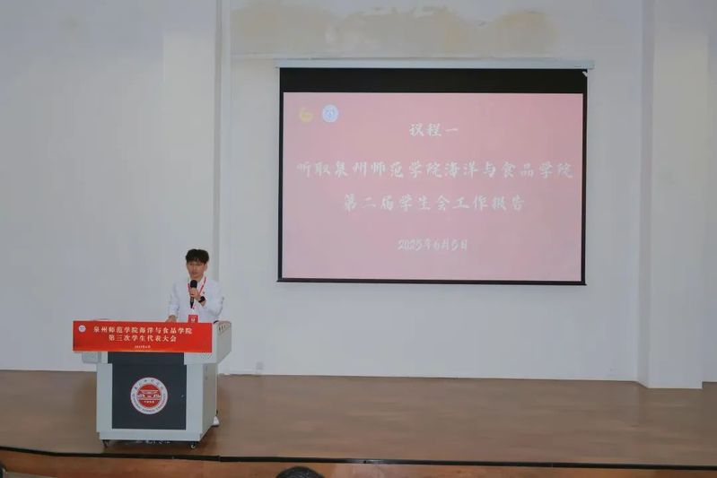 6月5日下午,海洋与食品学院第三次学生代表大会在孙中山大礼堂五楼阶梯教室顺利召开。学院党委副书记刘礼元、校学生会执行主席蔡诗琳、学院团委副书记王哲芳、全体辅导员以及全院56名学生代表出席大会。