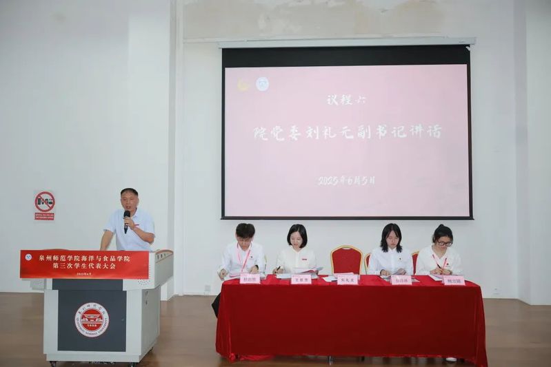开幕式上,受学院党委委托,学院党委副书记刘礼元向大会的召开致以热烈祝贺,他充分肯定了学生会过去一年的工作成效,指出其在思想引领、改革创新、服务同学等方面作出的积极贡献,展现了海食青年的使命担当。并对全体青年学生提出三点希望:一是强化理论武装,勇为伟大征程的“奋进者”;二是锤炼道德品格,敢为躬身实践的“先行者”;三是淬炼专业能力,善为时代浪潮的“领航者”。同时,他希望新一届学生骨干接好接力棒,不断开创学生会组织工作新局面,为学校建设特色鲜明的一流应用型大学作出更大贡献,在推进强国建设、民族复兴征程中彰显青年担当。
