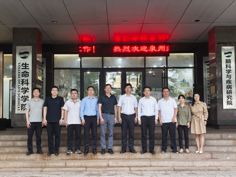在青岛大学,生命科学学院党委书记孙建华、院长孙海新对学院一行人的到访表示热烈欢迎。团队深入学习了该校在科研团队建设、本科生培养模式、学科交叉融合等方面的经验做法。青岛大学整合多学科资源,在海洋与食品领域打造了多学科协同创新平台,推动了专业建设的创新发展。特别是该校施行的科研型、教学型、科研教学型分类培养模式,可以充分发挥每个教师的优势,提高教学质量和科研产出。此外,本科生“创新班” 模式,以参加省级及以上创新项目作为毕业要求,有效提升了学生的科研素养、实践能力与创新能力。最后,双方就如何打破学科壁垒、促进海洋科学与生物技术、生物与医药等多学科深度交叉融合进行了深入交流,并探讨了在教学资源共建共享方面的合作机会。