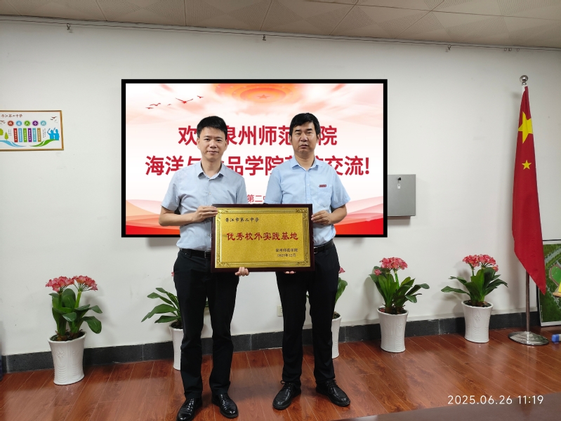 6月26日上午,学院副院长(主持工作)梁鹏带队赴晋江第二中学开展教育实习合作洽谈、人才培养方案修订研讨、优秀校外实践基地授牌及校友座谈等一系列活动。生物科学系主任陈细香、副主任王艺璇、专任教师王翠芳参加。晋江第二中学校长许明哲、副校长高树伟等热情接待了学院一行人。