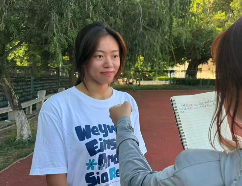 当问到训练的感受时,谷雅静同学擦了擦汗笑着说:“虽然很累,每天都爆汗,第二天早上醒来一直是腰酸背痛的,但是在这段时间中我体会到了充实和自律的快乐。”为学院做贡献,让她感到非常光荣。