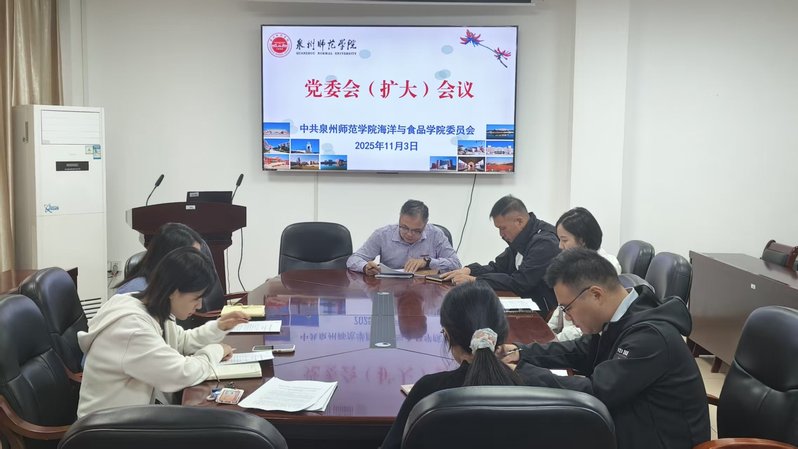 11月3日,海洋与食品学院党委会召开扩大会议,学习党的二十届四中全会精神,传达省委、校党委贯彻意见,并研究部署学院贯彻意见。全体党委委员、各党支部书记参加会议,学院党委书记蔡志荣主持会议并讲话。
