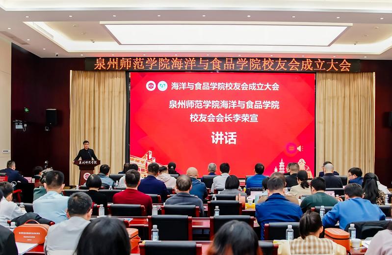 李荣宣会长在发言中深情回顾了在泉州师专生物系的求学时光,感恩母校赋予的专业知识与“探索坚韧、协作创新”的精神品格。他提出校友会未来三大核心任务:一是当好“资源对接站”,为校友事业发展牵线搭桥、互通信息;二是筑牢“情感联络点”,通过返校团聚、行业交流等活动延续同窗情谊;三是做好“校友后盾团”,协调资源支持校友学习提升与职业发展,并及时反馈校友建议助力母校建设。他说:“无论走得多远,母校始终是我们梦想起航的地方,让我们以拳拳之心反哺母校,共同书写海食人新的荣光。”