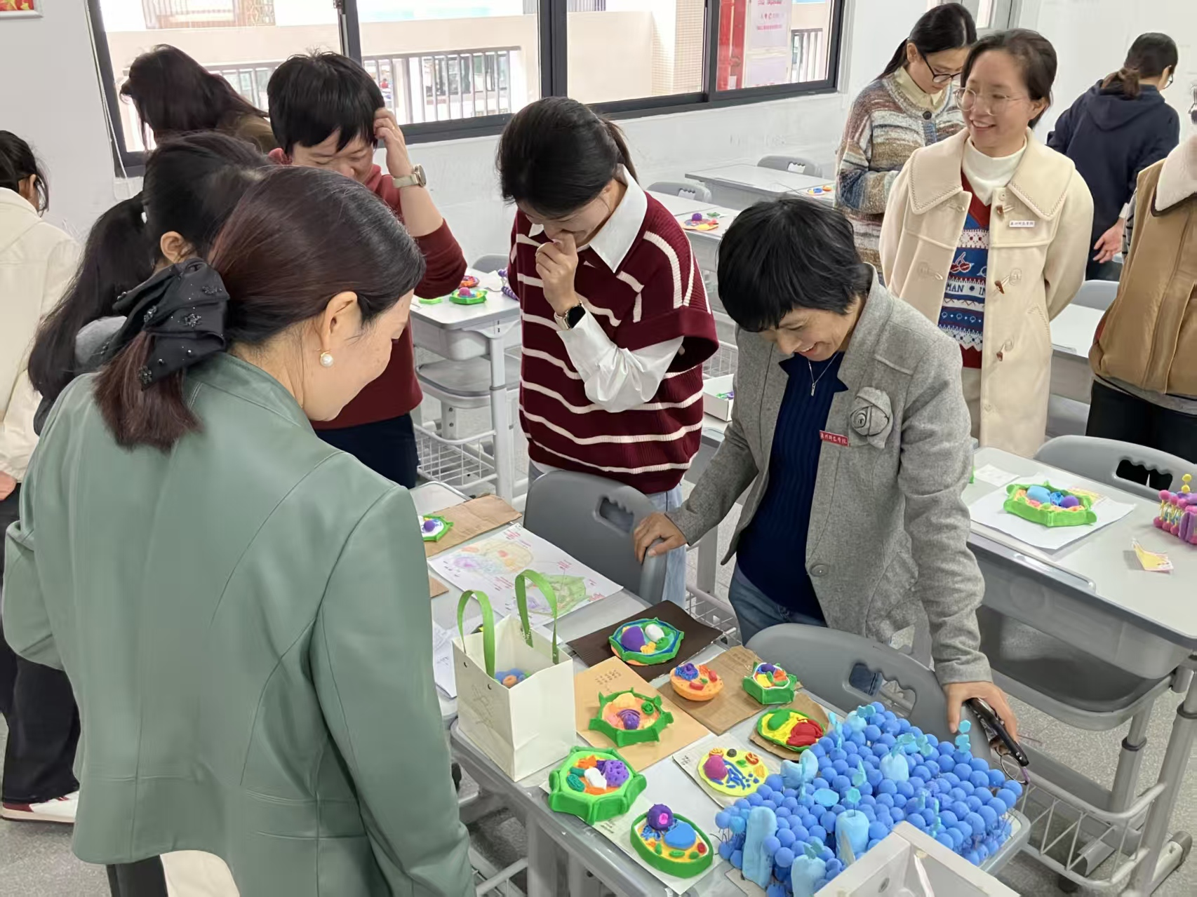 座谈会后,老师们还参观了台商校区即将开展的生物科技活动学生的作品。