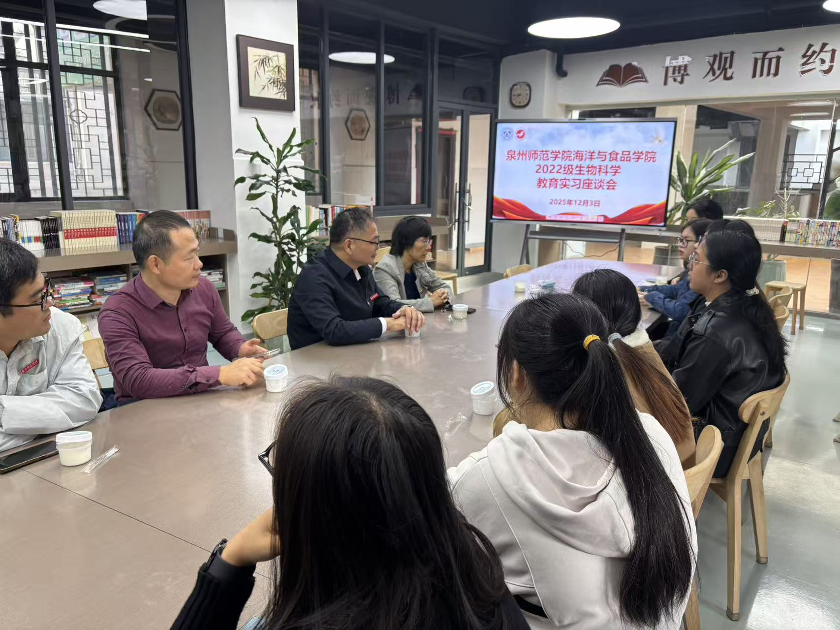 123,党委书记蔡志荣、生物科学系主任陈细香、教研室负责人傅淑以及带队老师桑庆亮等一行4,专程前往泉州实验中学滨江校区及台商校区实习点,看望在此实习的2022生物科学专业实习生们,以座谈交流传递学院关怀,为大家的实习之路鼓劲加油。滨江校区指导老师王茗心、台商校区副校长王娟娟、教研组组长张美珍、高一年段长惠永杰、李秀兰以及高一生物组组长陈琳婧等热情接待并参加座谈。
