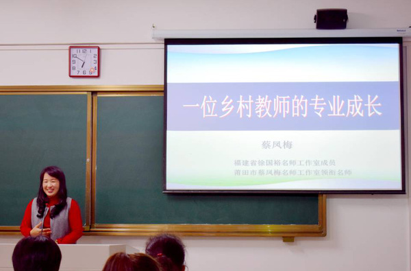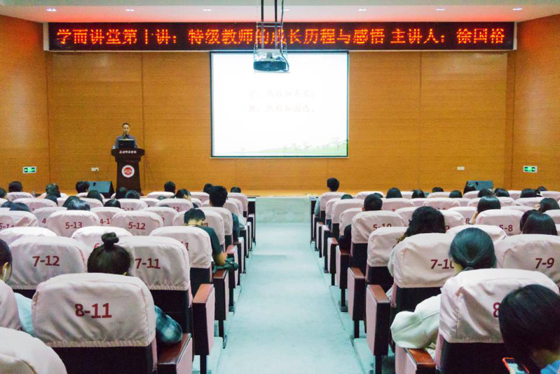 徐国裕给师生代表近160人作题为《特级教师成长之路》的报告,他结合自身经历与感悟阐明坚守初心与梦想的重要性,并赠予听众“翔”“功”二字及其深厚蕴意以示激励,倡导大家端正心态,做好教育接班人。杨良春给学生们带来了题为《自智数学:构建学习新生态》的报告,他通过分析“自智教学的背景意蕴”展开讨论,并以《角的度量》这一课程为例,结合自身教学经验,指出教学中可能存在的问题,提出“转化”这一数学思想,引导听众运用同化、顺应进行教学。他还从课堂基本架构、课堂基本程序两个方面进行讲解“自智教学的学习方式”,并强调“自助”“助学”两个关键,鼓励学生自主研学,提出“情景化”“问题化”“活动化”的助学策略。蔡凤梅给学前教育专业的学生们带来了题为《乡村特级教师成长之路》的报告,她从“广学”“砺行”“共勉”三个方面讲述自身教学历程,分享自己阅读经历,提出要反思教学缺点、积累经验、提高能力、端正教育行为,她还通过自身实例说明寻找教学平台、争取交流机会、加入团队并分享教育思考的重要性,鼓励学生多与名师交流,实现共同进步。邱燕为师生代表近60人作题为《教学名师成长之路》的报告,她通过电影《老师好》引入讲座主题――遇见,并分享自己人生中重要的几次遇见,她还介绍自己参加教学比赛的经历,通过多个教学环节详细分析所获得的经验和教训,重点介绍教学中三把金钥匙:“读懂孩子”“读懂教材”“重视团队力量”。